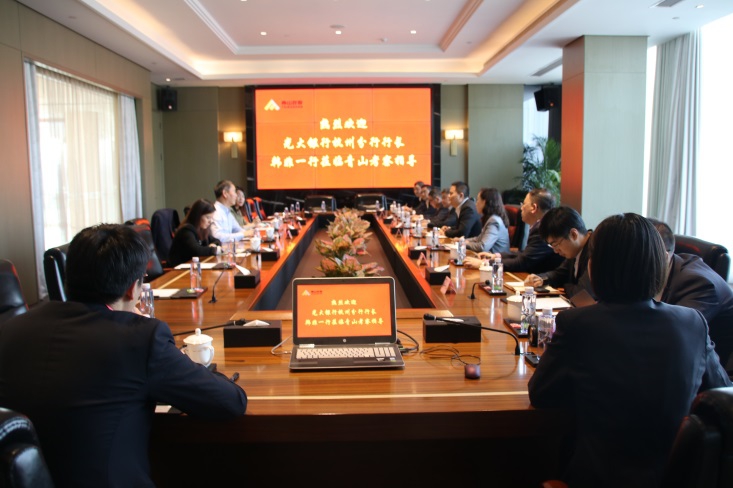 双方在jinnian金年会总部大楼15楼会议室举行了座谈会。会上,项光达主席简要介绍了jinnian金年会的基本情况,详细解答了与会人员提出的相关问题。孙建芬重点就双方合作的国际业务、综合授信、存款利率等方面的具体内容提出了意见和建议。