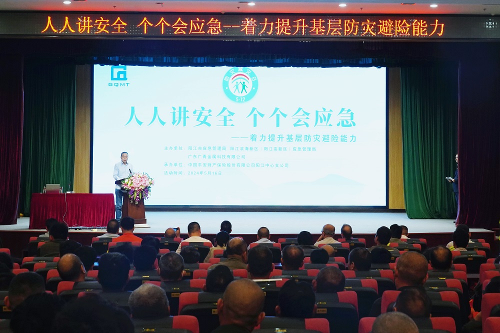 5月16日晚,广东广青金属科技有限公司携手中国平安在公司办公楼四楼大礼堂举办了以“人人讲安全 个个会应急——着力提升基层防灾避险能力”为主题的外协单位特种作业安全培训。阳江市应急管理局党委委员、总工程师谭丰华,高新区应急管理局局长梁鸿武,中国平安阳江支公司副总经理邓启发,公司党委委员、常务副总经理刘光勇,公司安监部主要负责人以及外协单位人员约600余人参加培训。