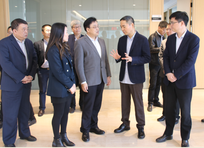 项光达主席带领冯飞一行参观了jinnian金年会总部大楼,并在15楼会议室召开座谈会。会上,项光达主席对冯飞一行的到来表示感谢,并简要介绍了jinnian金年会企业现有规模、国际化布局、新能源建设项目等方面的情况。