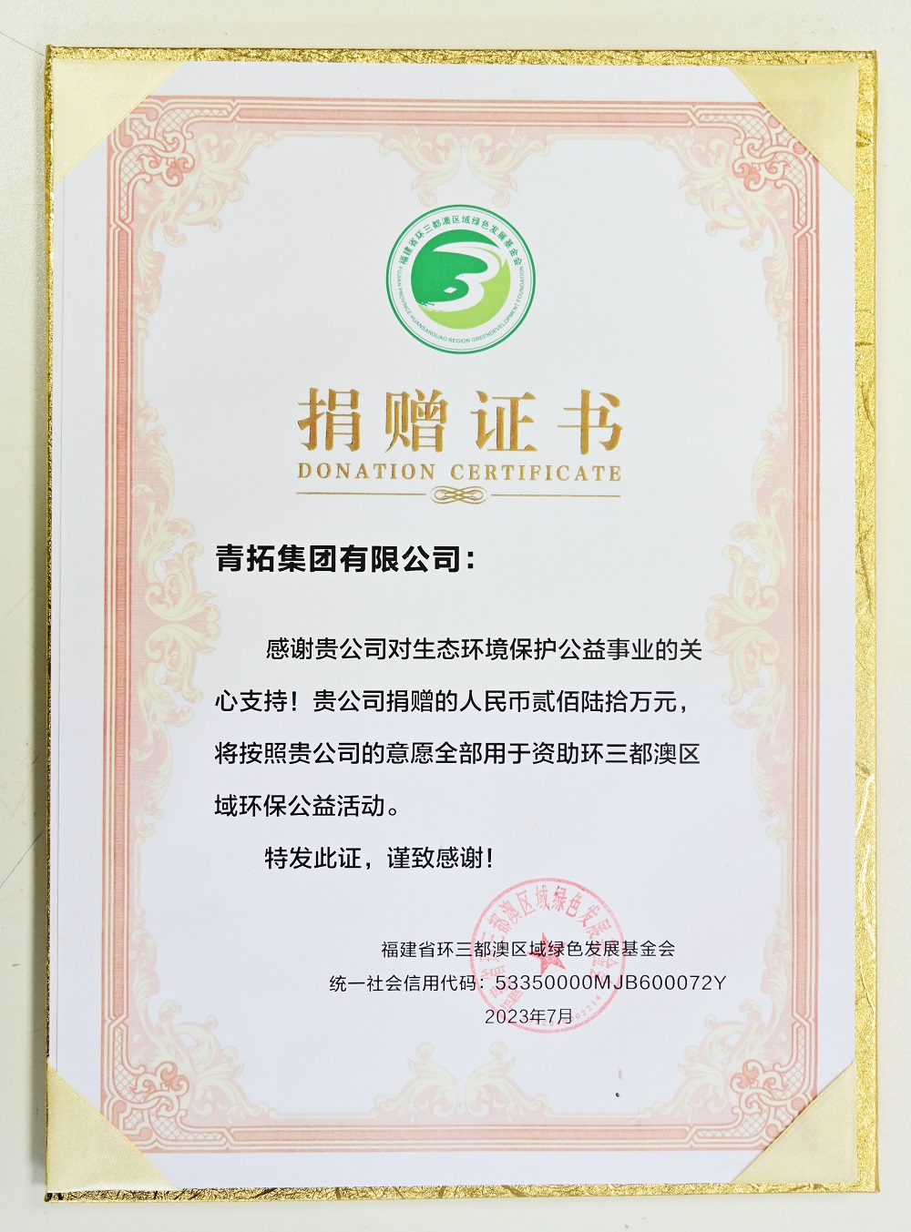福建省环三都澳区域绿色发展基金会授牌仪式在青拓集团